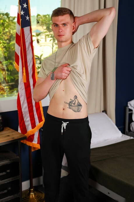 Active Duty: Sexy dude Liam Hunt and attractive boy Mick Marlo fuck ass after sucking