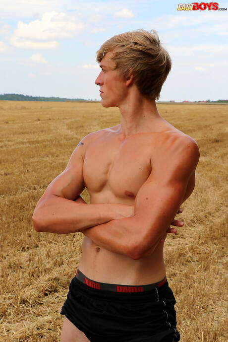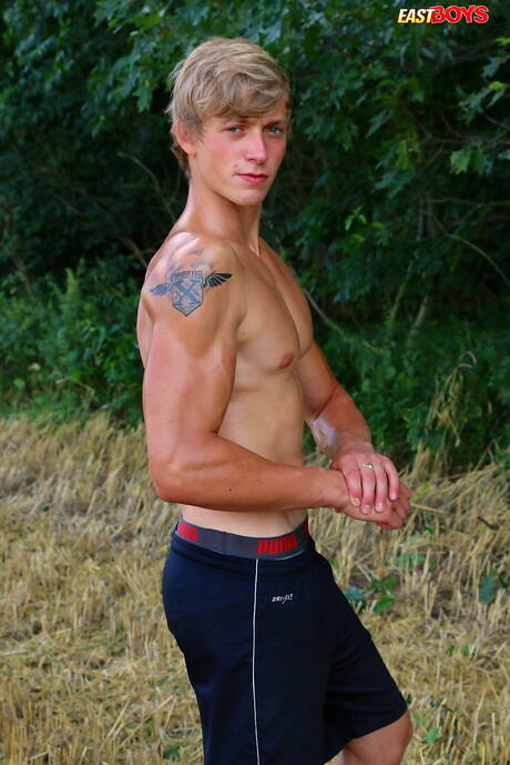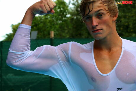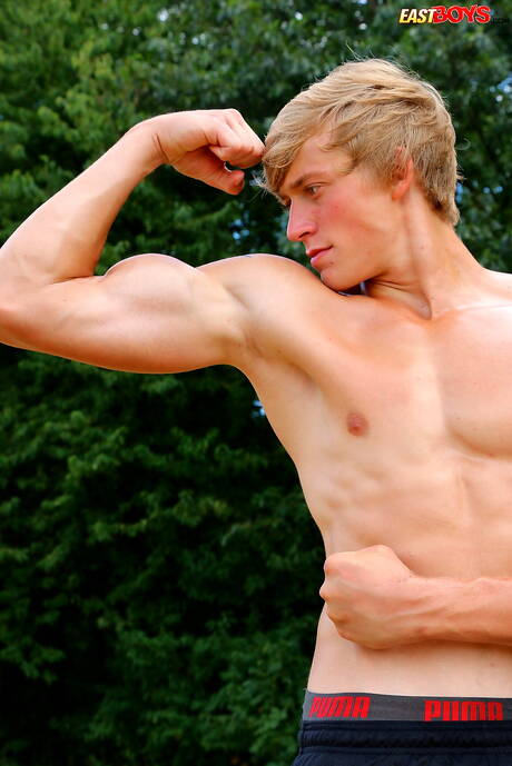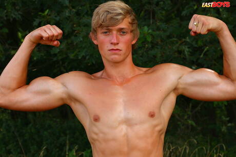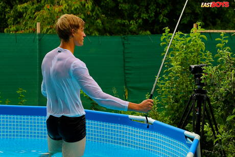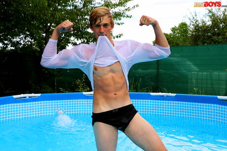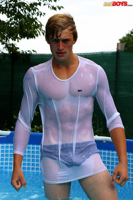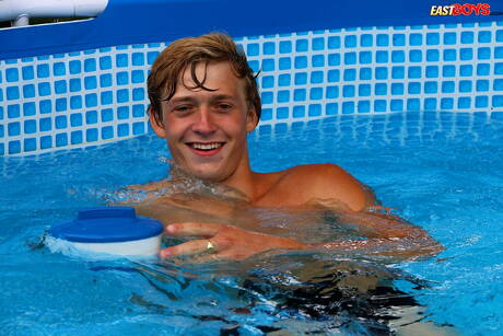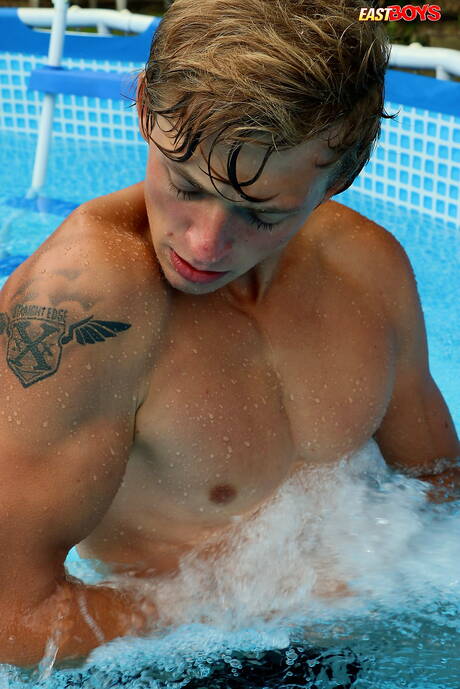 East Boys: Strong bull Blake Orson shows a perfect body in the pool
