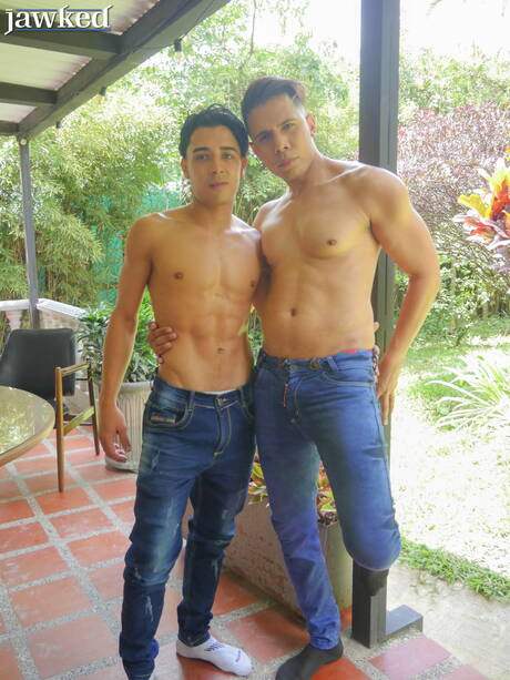 Jawked: Strongman Andrés Magno and stud Oliver Diamond sucking and fucking each other outside