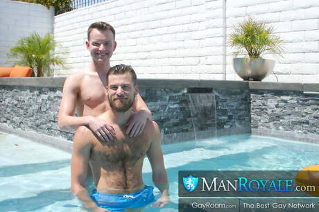 Man Royale: Strongman Luke Kennedy and well-built Mars Rousseau fuck after blowjob at the pool