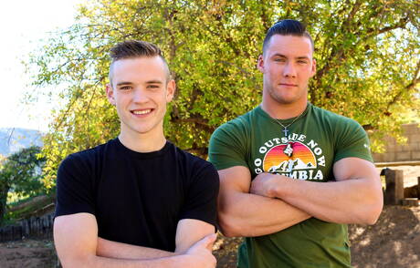 Active Duty: Stud Jesse Kovac and american muscular Scott Finn have a hot couple sex outside