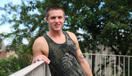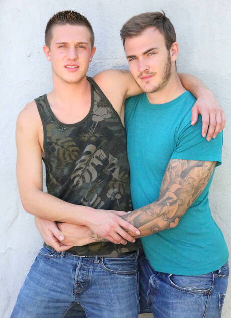 Men: Superstud Cody Avalon and american otter Christian Wilde have a hot couple scene outside