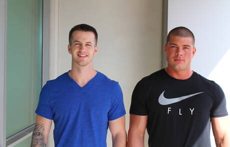 Active Duty: Two american boys well-built Quentin Gainz and muscular Brad Banks fuck after dick sucking
