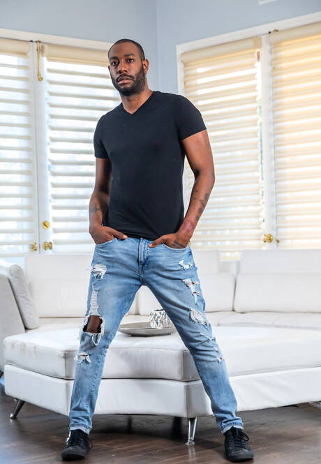 Noir Male: Two american guys hairy stud Zario Travezz and beefy August Alexander in hard anal sex