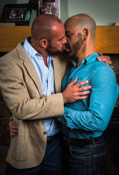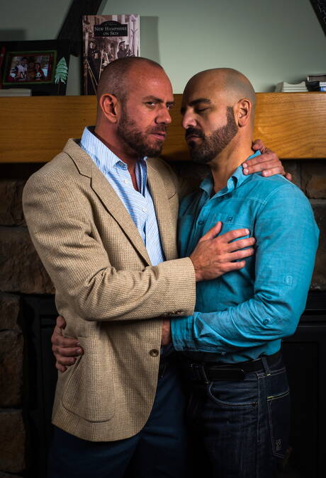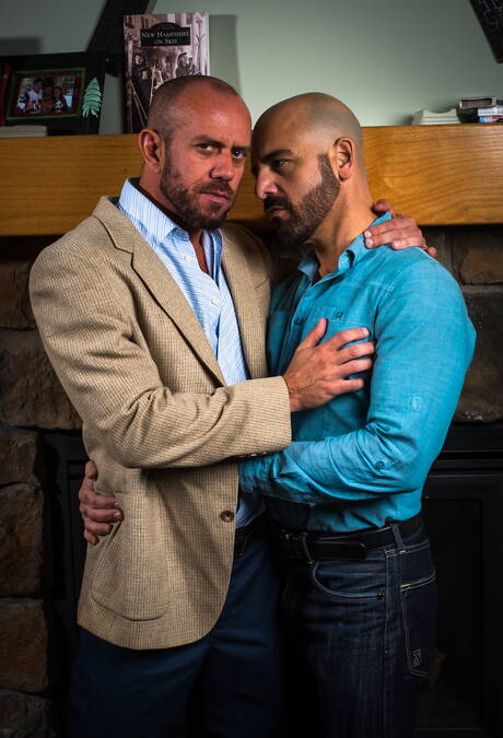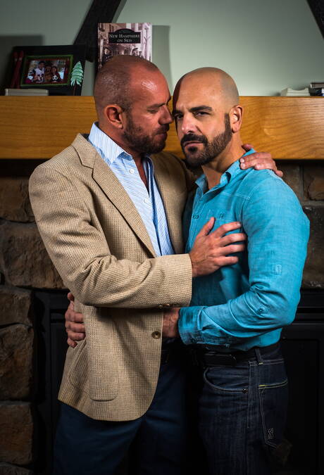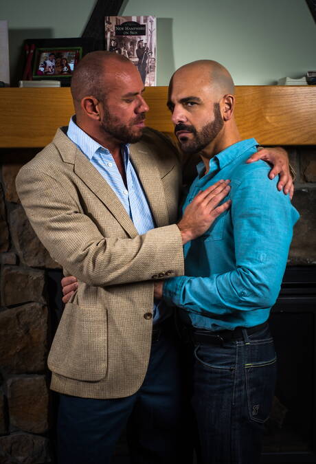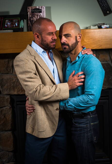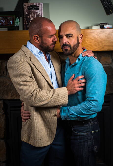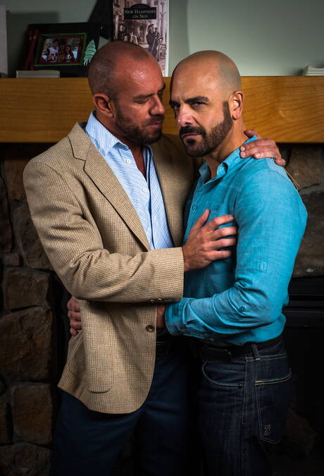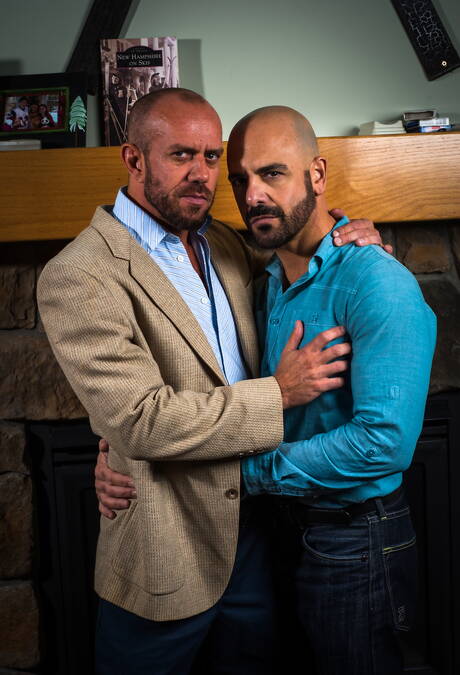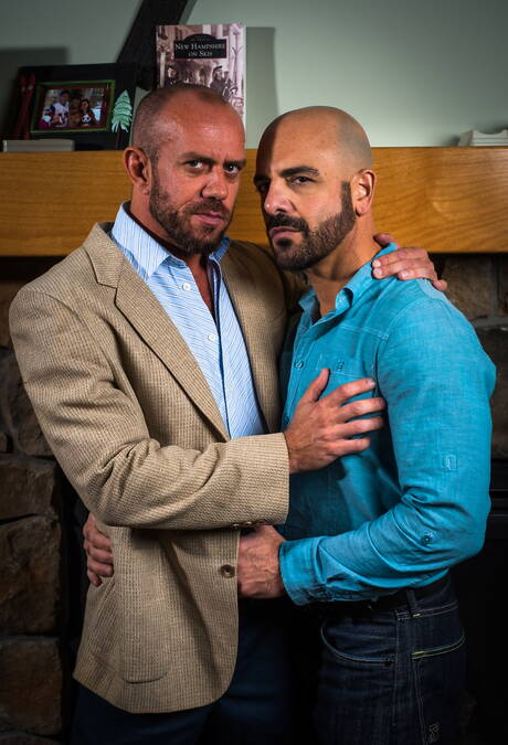 Icon Male: Two american guys otter Adam Russo and muscular Matt Stevens shows a muscle body