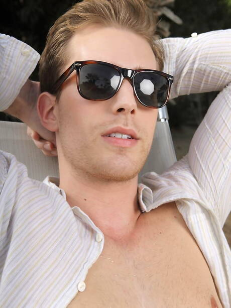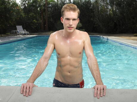 Randy Blue: Well-built Tristan Scott posing naked and showing tight ass at the pool