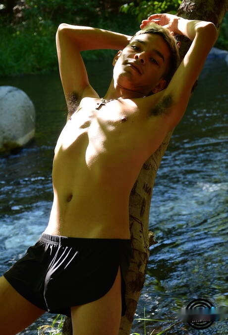 SpunkU: Young boy Brad Lyons and young Sebastian Reigns playing with cock outdoor