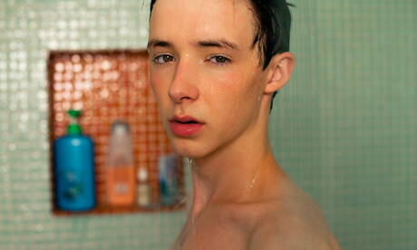 Helix Studios: Amerikaanse twink Davey Brooks masturbeert met speeltje in hete douche