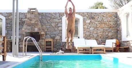 Belami Online: Tsjechische sterke man Ariel Vanean trekt zijn pik af onder de douche