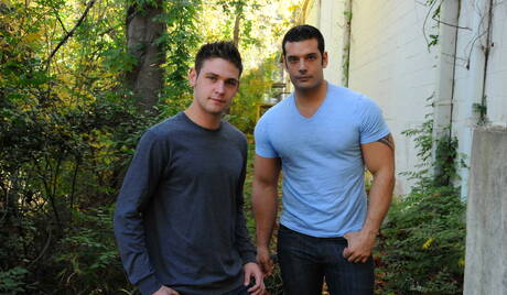 Men: Latijns-Amerikaanse stier Marcus Ruhl en Amerikaanse otter Duncan Black neuken na buiten te zijn gepijpt