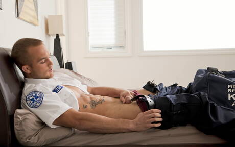 Next Door Studios: Gespierde Edward Prince kleedt zich uit en laat zijn mooie kont zien in de badkamer
