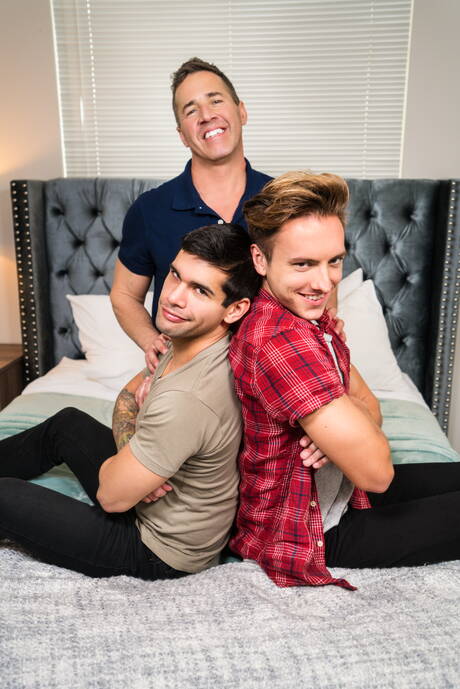 Men: Schaamteloze kerels Ty Mitchell, Dean Phoenix en Bar Addison hebben een trio met anale seks in de keuken