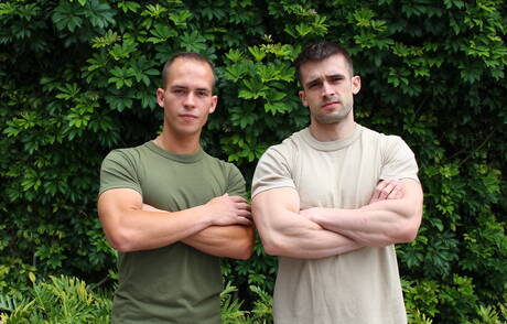 Active Duty: Twee Amerikaanse kerels, de gespierde Richard Buldger en de knappe Mathias, in hete homoseksuele actie in de buitenlucht