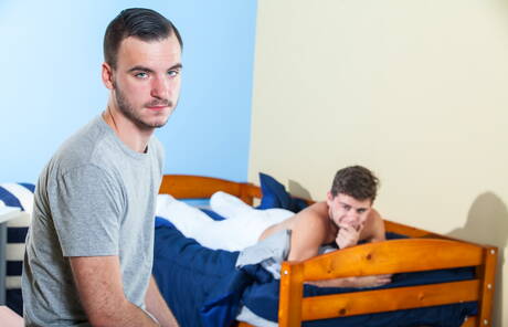 Icon Male: Twee Amerikaanse kerels, Aaron Slate en gespierde Aj Monroe, kleden zich uit en laten hun strakke kont zien