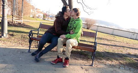 Belami Online: Twee Tsjechische twinks Raf Koons en gespierde kerel Rick Palmer in hete kontneukactie buiten