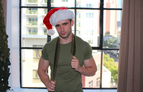 Active Duty: Amerykański muskularny Mathias drażni swojego kutasa na zewnątrz