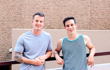 Active Duty: Amerykański muskularny Quentin Gainz i przystojniak Brian ruchają się w dupę po ssaniu na zewnątrz