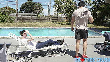 Brother Crush: Amerykański muskularny Valentino Nappystar ma przyjemność uprawiać seks we trójkę przy basenie