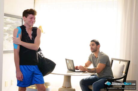 Shower Bait: Amerykański przystojniak Arad Winwin i przystojniak Grey Gold uprawiają seks analny w wannie