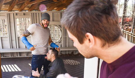 Men: Dobrze zbudowany Amerykanin Cliff Jensen i przystojny chłopak John Henry w gorącej scenie homoseksualnej