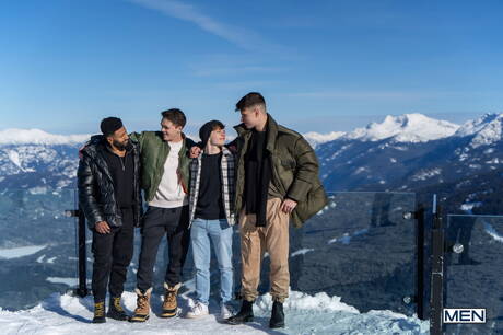 Men: Młody Amerykanin Jake Preston i twardziel Braxton Cruz w czarno-białym seksie przy basenie