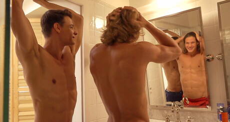 Belami Online: Rosyjski siłacz Andriej Karenin i węgierski ogier Ethan Opry w gorącym seksie analnym w wannie