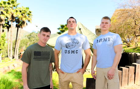 Active Duty: Bezczelni chłopcy Ryan Jordan, Alex James i Blake Effortley w gorącym trójkącie analnym na zewnątrz