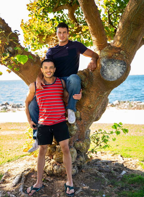 Sean Cody: Dwóch amerykańskich facetów, umięśniony Manny i dobrze zbudowany Jeb, ruchają się w tyłek na zewnątrz