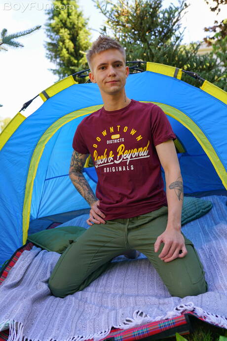 Boyfun: Młody facet Max Gen pozuje nago i pokazuje gorący tyłek na zewnątrz