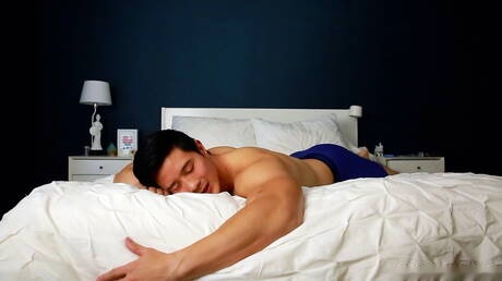 Peter Fever: O fisiculturista asiático Peter Le masturba seu pau grande na cama