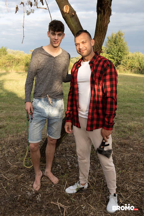 Bromo: O fisiculturista tcheco Denny Chris e Sasa Jelinek fodem a bunda depois de chupar um pau ao ar livre