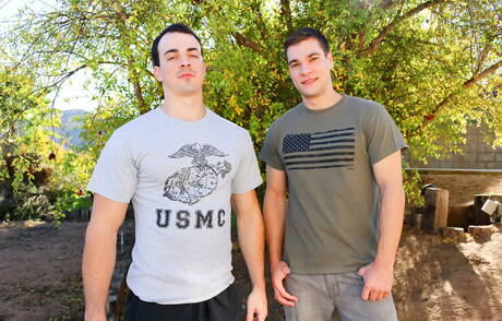 Active Duty: Caras americanos legais, o robusto Princeton Price e o fisiculturista Alex James em uma foda anal gostosa ao ar livre
