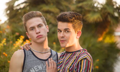 Helix Studios: 美國明星熱辣小鮮肉安迪泰勒和小鮮肉邁卡韋斯特在戶外互相吸吮和操弄