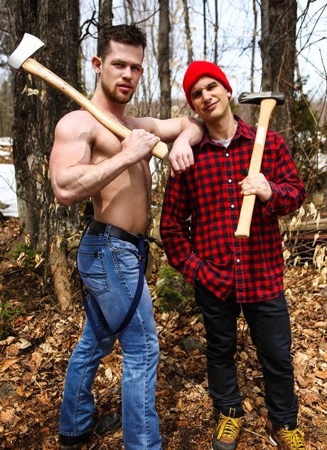 Men: 加拿大肌肉發達的Pierre Fitch和美國多毛的帥哥Kurtis Wolfe在戶外進行激烈的肛交