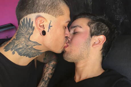 裸體男人接吻