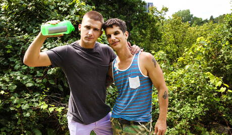 Men: 性感好友 Pierre Fitch、Jake Porter 和 Theo Ross 在戶外享受火熱的三人肛交