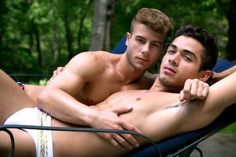 Cocky Boys: 西班牙硬漢艾倫金和波多黎各帥哥阿什頓薩默斯在泳池裡互相猛幹