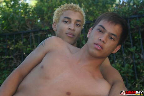 Asian Gay Network: 猛男 Trent Tongo 和超級猛男 Rikki Davis 在泳池邊上演口交戲